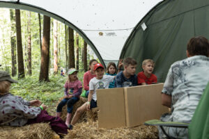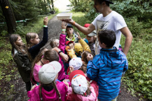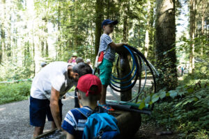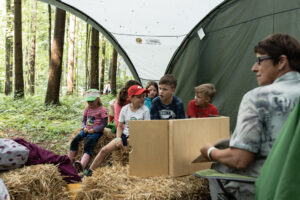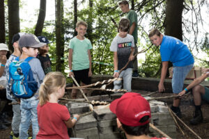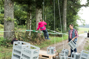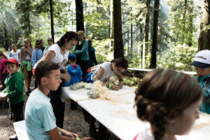 Heute besuchten uns die Jäger und erzählten uns viel spannendes aus ihrem Alltag. Ein weiteres Highlight war auch das Baumklettern sowie das Harrassenstapeln.